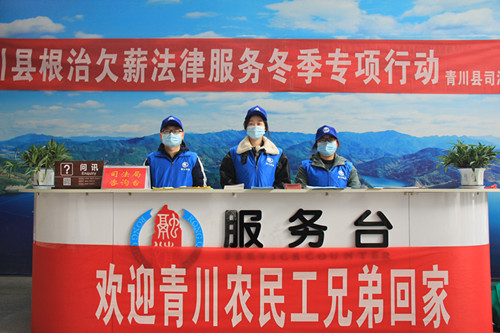 2月5日,县司法局联合县人社局、县总工会深入青川县客运站、人民广场等人群聚集场所开展根治欠薪法律服务冬季专项行动法治宣传活动,让农民工温暖过年。
