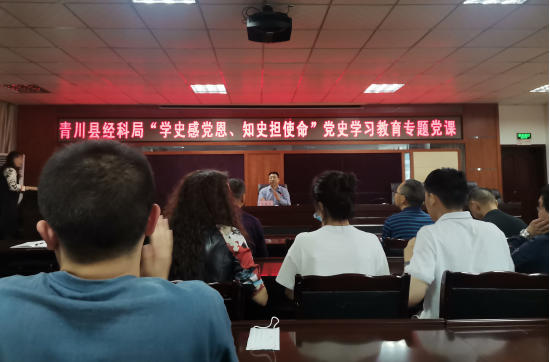 5月13日下午,县经科局开展以“学史感党恩、知史担使命”为主题的党史学习教育专题党课。邀请了退休老干部、党校原副校长、高级讲师柳成田为全局干部职工讲党课。