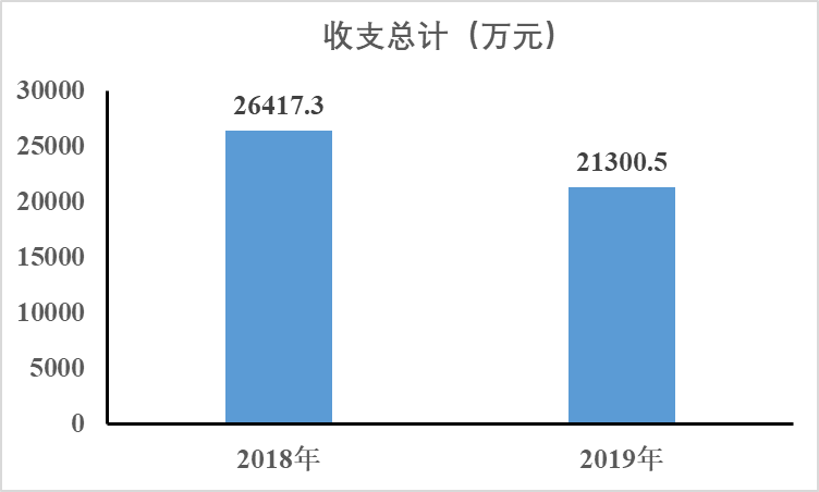 2019年度收、支总计21300.5万元。与2018年相比,收、支总计各增加/减少-5116.8万元,增长/下降-24.02%。主要变动原因是主要变动原因是人员和项目变化。