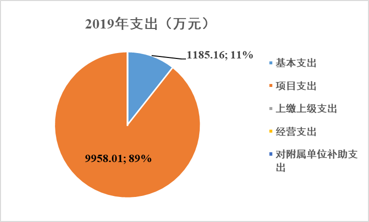 2019年本年支出合计11143.17万元,其中:基本支出1185.16万元,占10.64%;项目支出9958.01万元,占89.36%;上缴上级支出0万元,占0%;经营支出0万元,占0%;对附属单位补助支出0万元,占0%。