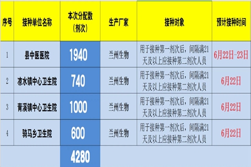 青川县2021年(第十四批)新冠病毒疫苗分配表