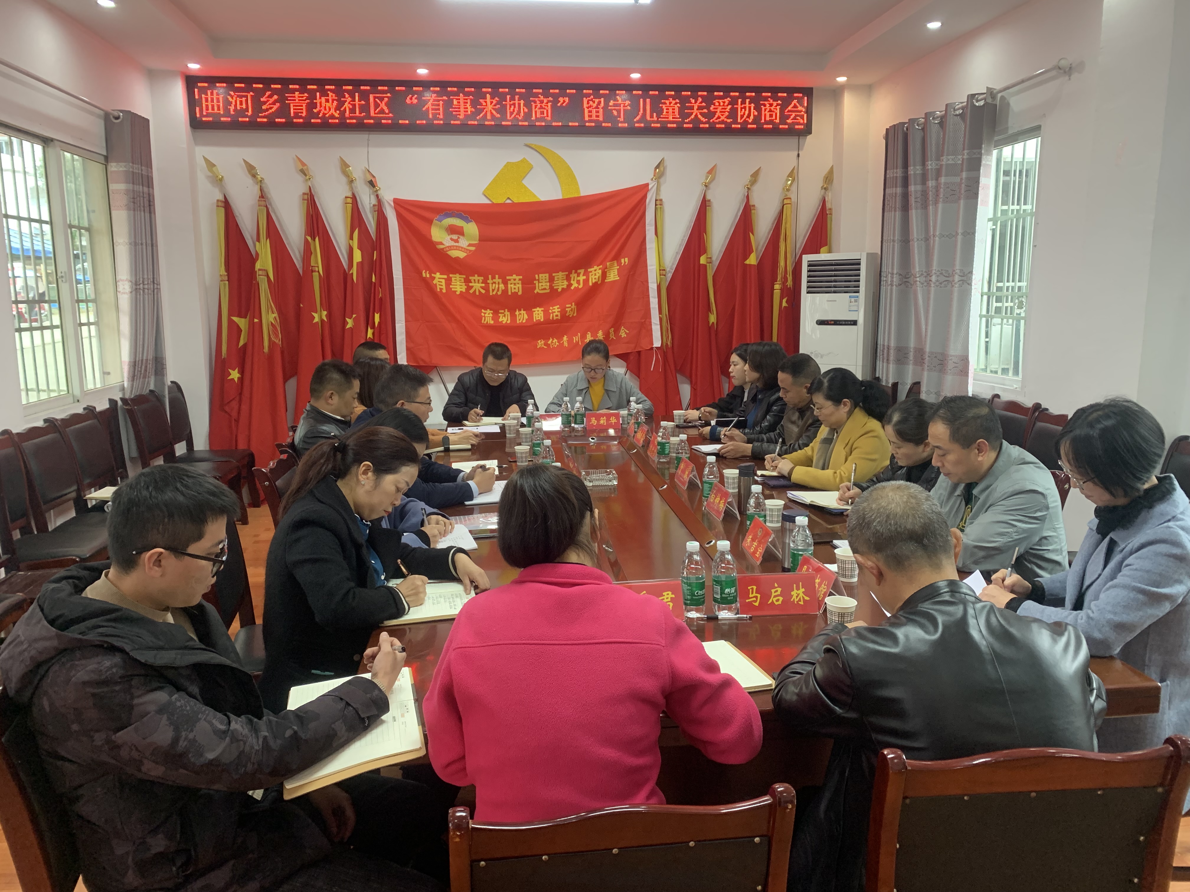 10月25日,县政协副主席贾琳一行到曲河乡青城社区召开“有事来协商”留守儿童关爱协商会议,本次会议的主题是讨论曲河乡留守儿童关爱机制的建立。