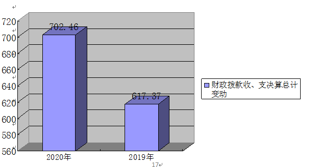 2020年财政拨款总计收入731.69万元、支出702.46万元。与2019年相比,总计收入增加114.32万元,支出增加85.09万元,收入增加18.51 %,支出增加13.78 %。主要变动原因:一是较2019年一般公共服务增加81.5万元,支出增加56.74万元;二是社会保险和就业增加较2019年增加9.62万元;三是卫生健康支出较2019年收入增加7.54万元,支出增加7.54万元;四是2019年节能环境收入减少2万元;支出减少6.47万元;五农林水支出较2019年收入增加8.8万元,支出增加8.8万元;六是住房保障收入增加8.86万元,支出增加8.86万元。