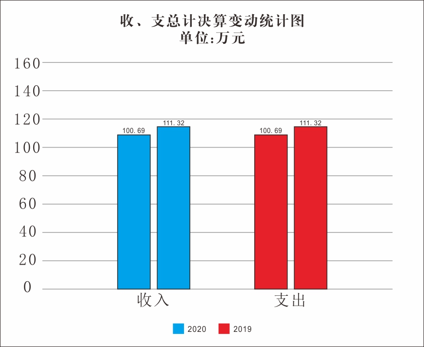 2020年度收入总计100.69万元,支出总计100.69万元。与2019年相比,收入总计减少10.63万元,减少9%;支出总计减少10.63万元,减少9%。主要变动原因:(1)2019年本年度财政预算增加救助资金29万元;(2)追加2019年公益性初级卫生救护“百万培训项目”资金12万元;(3)安排重大公共卫生服务0.09万元。