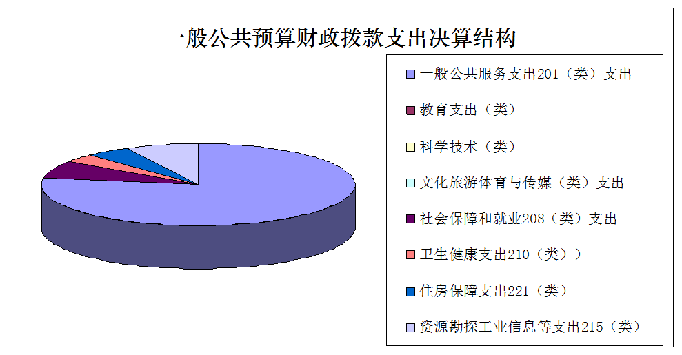2020年一般公共预算财政拨款支出947.30万元,主要用于以下方面:一般公共服务支出201(类)支出735.47万元,占77.63%;社会保障和就业208(类)支出64.64万元,占6.82%;卫生健康支出210(类))31.07万元,占3.27%;住房保障支出221(类)45.99万元,占4.85%;资源勘探工业信息等支出215(类)70.14万元,占7.40%。