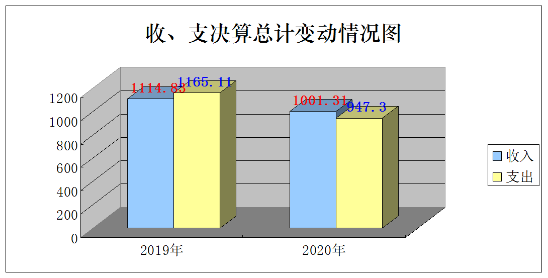 2020年度收入1001.31万元、支出947.30万元,结余54.02万元。与2019年收入1114.83万元、支总计出1165.11万元相比收入减少113.52万元,支出减少217.81万元,收入下降10.18%。支出下降18.69%。主要变动原因是:1、脱贫帮扶工作结束,差旅费减少。2、受疫情影响培训人次减少。3.受疫情影响接待人员减少。
