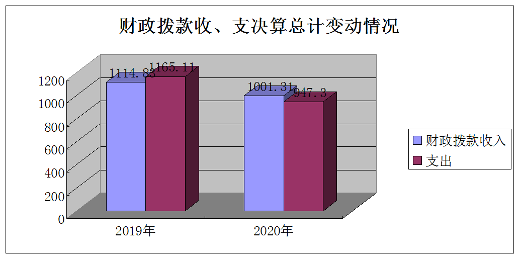 2020年财政拨款收入1001.31万元、支出总计947.30万元,年末结转和结余54.02万元。与2019年相比,财政拨款收入减少113.52万元、支出总计减少217.81万元,收入下降10.18%,支出下降18.69%。主要变动原因是:1、压缩开支,过紧日子。2、受疫情影响培训人次减少。3.受疫情影响接待人员减少。