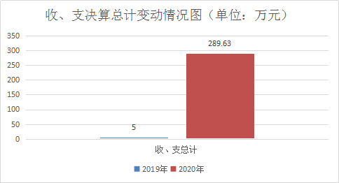 2020年度收、支总计289.63万元。与2019年相比,收、支总计各增加284.63万元,增长5692.6%。主要变动原因是2019年为新增单位,当年无预算,机构改革后2020年交易中心和政务中心由审批局管理。
