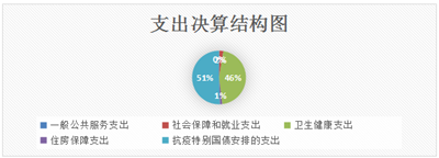 2020年支出总额1769.33万元。其中:一般公共服务支出3.43万元,占总支出的0.19%、社会保障和就业支出42.8万元,占总支出的2.41%、卫生健康支出810.82万元,占总支出的45.52%、住房保障支出24.24万元,占总支出的1.36%、抗疫特别国债安排的支出896.04万元,占总支出的50.52%。