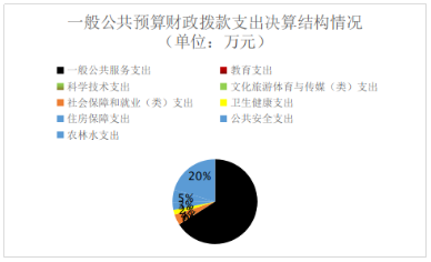 2020年一般公共预算财政拨款支出414.02万元,主要用于以下方面:一般公共服务(类)支出273.14万元,占66%;教育支出(类)0万元,占0%;科学技术(类)支出0万元,占0%;文化旅游体育与传媒(类)支出0万元,占0%;社会保障和就业(类)支出16.71万元,占4%;卫生健康支出7.59万元,占2%;住房保障支出12.15万元,占3%;公共安全支出19.73,占5%;农林水支出84.7,占20%。