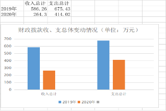 2020年度收入总计264.3万元、支出总计414.02万元。与2019年相比,收入减少321.96万元、支出减少261.41万元,分别减少55%、39%。主要变动原因是压缩一般性公共服务支出、农林水支出减少。