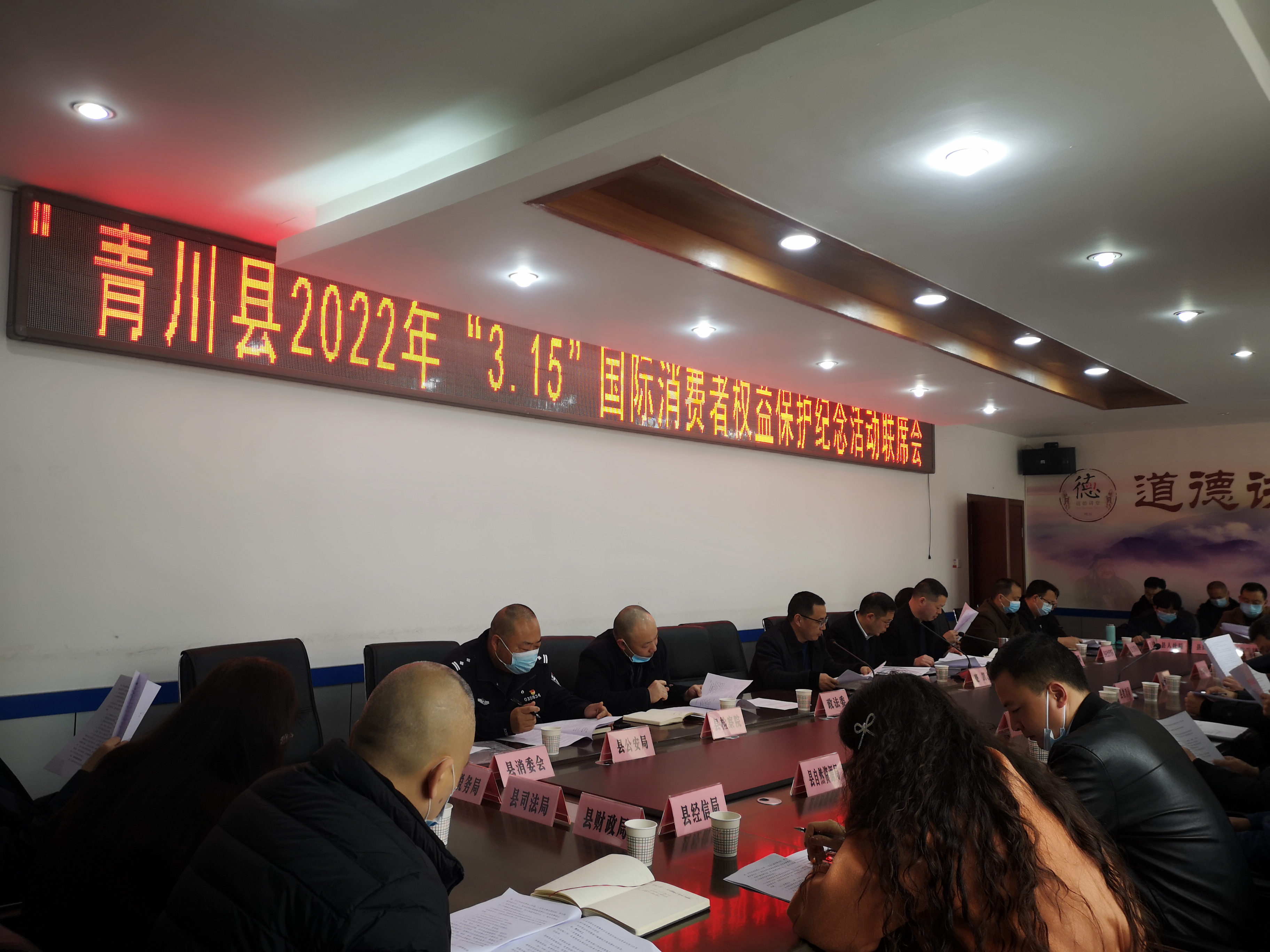 3月9日上午,青川县消委会组织市场监管、公安、法院、检察院、农业等36家成员理事单位和电信、移动、水、电、汽等公用企业召开纪念“3·15”联席座谈会,总结2021年消委工作,安排部署2022年消委工作及3·15纪念活动,县委常委、县政府副县长、县消委会名誉会长蹇凯出席了会议。