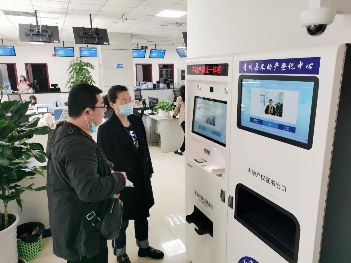 青川县不动产登记中心持续深入优化营商环境提升服务效能,切实加强不动产登记服务工作,创新工作模式,在广元县区率投入使用不动产自助制证及查询打印一体机,1分钟内即可获得查询结果证明。