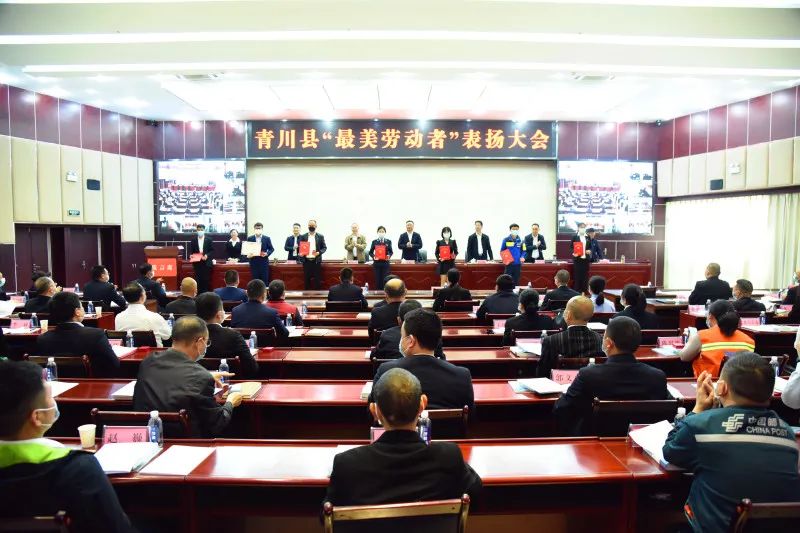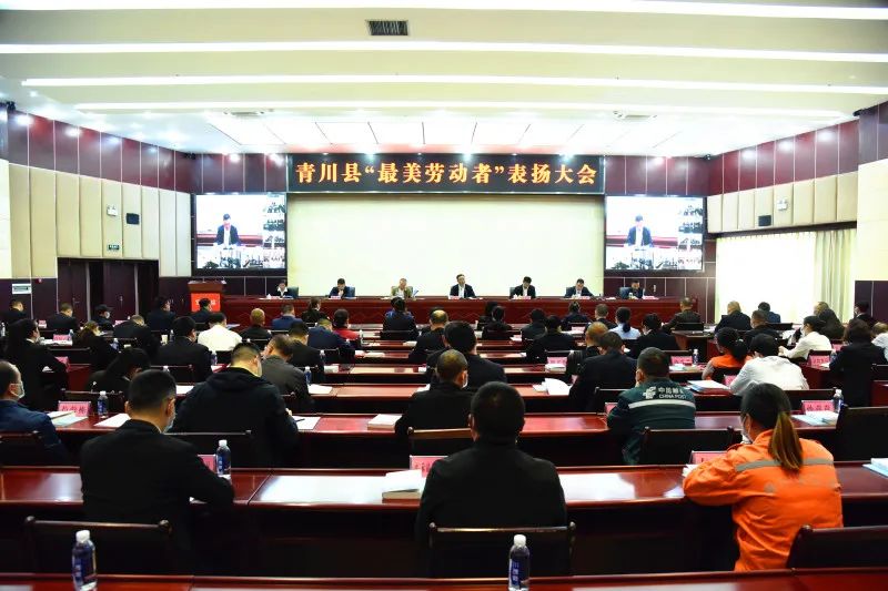 会议以视频方式召开,县领导佘锦、何立剑、张利民、贾琳及青川县首届“最美劳动者”代表,全国、省、市、县劳模代表,青川工匠代表,获得市级以上表彰的先进集体和个人,县级部门工会主席,10个产业工会、3个园区工会主席在主会场参加会议。各乡镇党委书记、分管领导、工会主席,乡镇辖区内“最美劳动者”和先进代表在分会场参加会议。