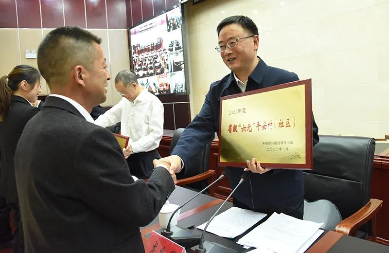 会上,宣读2021年度省级、市级“六无”平安村(社区)表扬名单、全县扫黑除恶专项斗争先进集体和先进个人表扬名单等,并为受表彰的先进集体和个人颁奖;关庄镇、木鱼派出所等先进代表发言。
