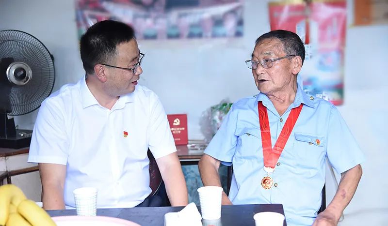 “身体好不好?”“现在家里收入怎么样?”“生活上还有什么困难?”……在贺光华家中,龙兆学仔细察看老人佩戴的“光荣在党50年”纪念章,与他促膝交谈,送上节日祝福,感谢他为党和人民的事业作出的贡献。贺光华老人回忆起旧社会的生活几度哽咽,感慨“没有共产党,就没有我如今的好日子。”得知老人患有腰椎病,龙兆学叮嘱贺光华保重身体,鼓励他坚定信心积极治疗,并要求当地干部一如既往关心关爱生活困难党员,切实为他们纾困解难,积极做好跟踪服务,让党组织的关心关怀落到实处。