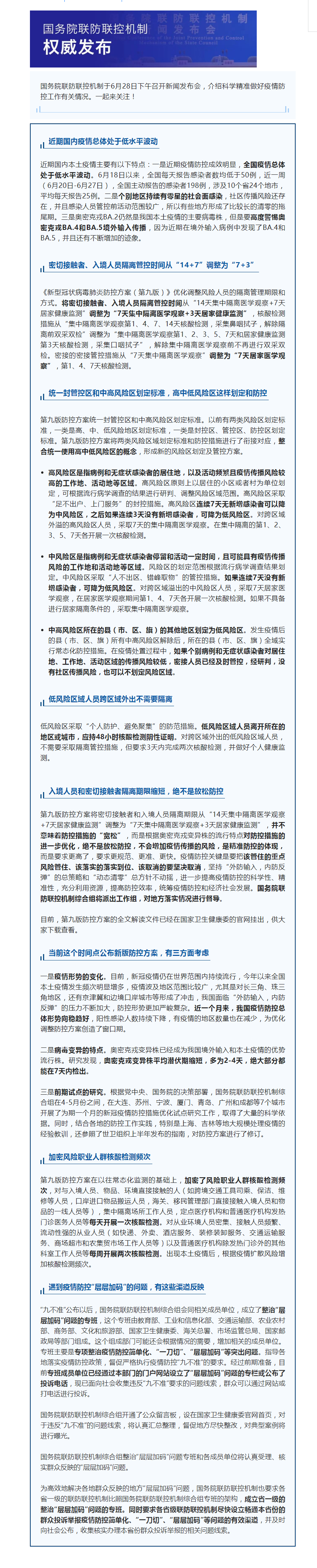 密接、入境人员隔离管控时间调为“7+3”,成立整治“层层加码”问题专班开通留言板……最新情况通报!