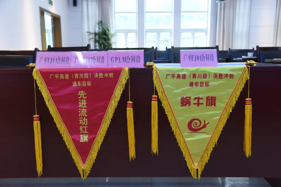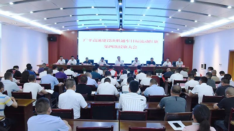 会议通报广平高速(青川段)全线施工进度并安排下一步工作;宣读了《关于表扬2022年6月广平高速公路(青川段)决胜冲刺通车目标劳动竞赛先进单位的决定》《关于命名广平高速建设党员攻坚突击队的决定》;为受表彰的先进单位和参建人员进行授旗嘉奖,为未按时间节点完成阶段性任务目标的单位颁发“蜗牛旗”;举行广平高速建设党员攻坚突击队授旗仪式;优胜单位代表作经验交流发言,党员攻坚突击队代表和进度滞后单位作表态发言。市交通运输局副局长张立安,县人大常委会副主任张利民,县政府副县长赵彬,县级相关部门、乡镇、企业负责同志参加会议。