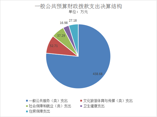 2020年一般公共预算财政拨款支出572.84万元,主要用于以下方面:一般公共服务(类)支出438.68万元,占76.6%;文化旅游体育与传媒(类)支出52.71万元,占9.2%;社会保障和就业(类)支出37.29万元,占6.5%;卫生健康支出16.98万元,占3%;住房保障支出27.18万元,占4.7%;