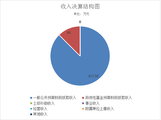 2020年本年收入合计705.58万元,其中:一般公共预算财政拨款收入617.58万元,占87.5%;政府性基金预算财政拨款收入88万元,占12.5%;上级补助收入0万元,占0%;事业收入0万元,占0%;经营收入0万元,占0%;附属单位上缴收入0万元,占0%;其他收入0万元,占0%。