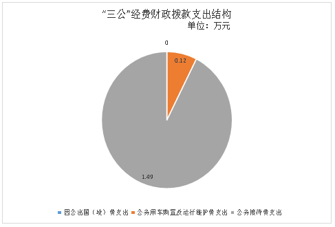 2020年“三公”经费财政拨款支出决算中,因公出国(境)费支出决算0万元,占0%;公务用车购置及运行维护费支出决算0.12万元,占7.5%;公务接待费支出决算1.49万元,占92.5%。具体情况如下: