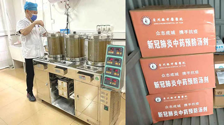 为充分搞好本次中药汤剂煎制配送工作,在县委、县政府的精心部署下,统筹整合了疫情防控中医药干预保障资金,青川县卫生健康局组织县中医医院中医药疫情防控专家、工作人员连夜加班,选用优质的药材,规范煎制了饱含青川爱心的“防疫暖心汤”,并用小袋分装以方便饮用。按时送至市卫健委作统一安排。