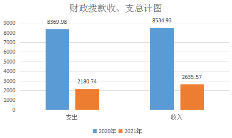 2021年财政拨款收入2635.57万元。与2020年相比,财政拨款收入减少5899.36万元,下降69%。主要变动原因是浙江长效帮扶资金减少。