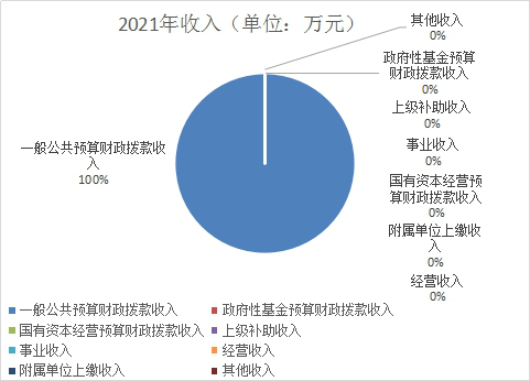 2021年本年收入合计477.78万元,其中:一般公共预算财政拨款收入477.78万元,占100%;政府性基金预算财政拨款收入0万元,占0%;国有资本经营预算财政拨款收入0万元,占0%;上级补助收入0万元,占0%;事业收入0万元,占0%;经营收入0万元,占0%;附属单位上缴收入0万元,占0%;其他收入0万元,占0%。