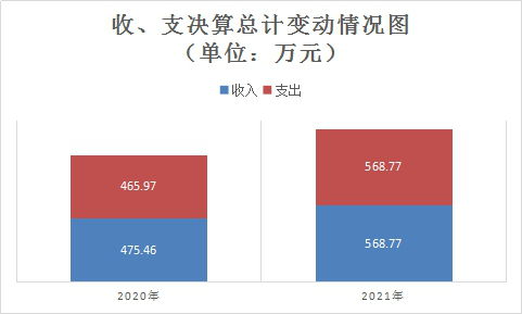 2021年度收入总计568.77万元,支出总计568.77万元。使用非财政拨款结余0万元,年初结转和结余90.99万元。与2020年相比,收入增加93.31万元,支出增加102.8万元,收入、支出增长19.6%、22.1%。主要变动原因1、年初结转结余。2、是新进人员经费增加,日常公用开支增加。