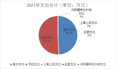 2021年本年支出合计568.77万元,其中:基本支出280.13万元,占49.3%;项目支出288.64万元,占50.7%;上缴上级支出0万元,占0%;经营支出0万元,占0%;对附属单位补助支出0万元,占0%。