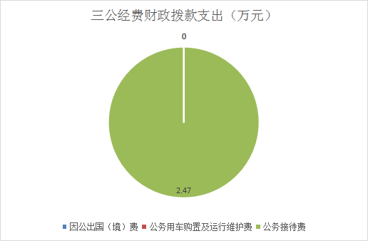 2021年“三公”经费财政拨款支出决算中,因公出国(境)费支出决算0万元,年初未安排预算;公务用车购置及运行维护费支出决算0万元,年初未安排预算;公务接待费支出决算2.47万元,占100%。具体情况如下: