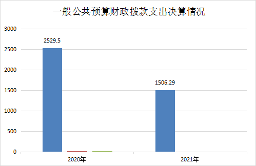 2021年一般公共预算财政拨款支出1506.29万元,占本年支出合计的100%。与2020年相比,一般公共预算财政拨款支出减少1023.21万元,下降40.45%。主要变动原因是2020年农民工应急周转金1120万元纳入当年支出,2021年无农民工应急周转金。