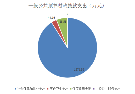 2021年一般公共预算财政拨款支出1506.29万元,主要用于以下方面:一般公共服务(类)支出2万元,占0.13%;社会保障和就业(类)支出1371.59万元,占91.06%;卫生健康支出(类)44.15万元,占2.93%;住房保障支出(类)88.55万元,占5.88%。