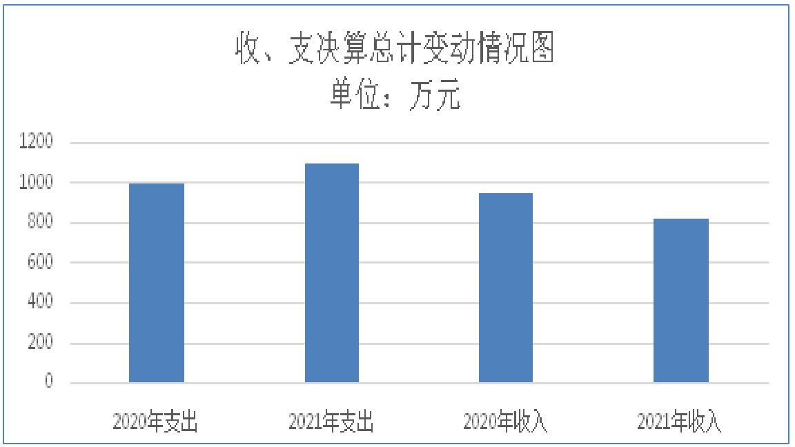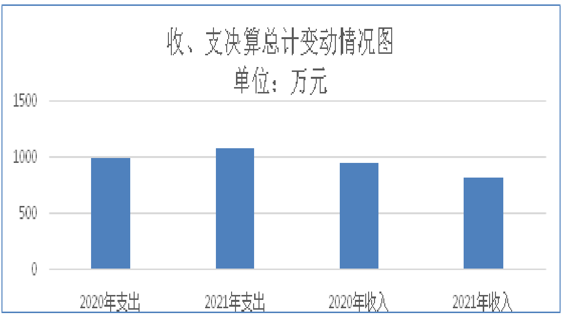 2021年度收、支总计816.86万元、1089.13万元。与2020年相比,收、支总计各减少132.11万元、增长96.29万元,下降13.92%,增长9.70%。主要变动原因:收入减少主要原因调出及退休人员人数增加,支出增加主要是院办公楼维修费增加。