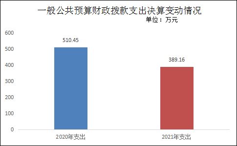 2021年一般公共预算财政拨款支出389.16万元,占本年支出合计的100%。与2020年相比,一般公共预算财政拨款支出减少121.30万元,下降23.76%。主要变动原因是项目个数减少,项目资金相应减少。