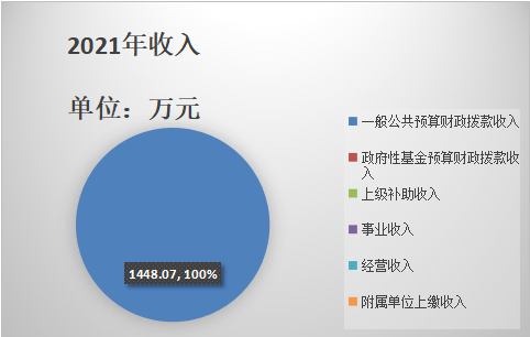 (一)部门财政资金收入情况。2021年收入合计1448.075万元,其中:一般公共预算财政拨款本年收入1448.07万元、占100%;无政府性基金预算财政拨款收入;无其他收入。