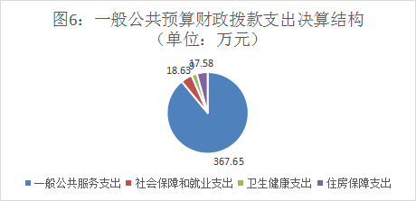 2021年一般公共预算财政拨款支出412.87万元,主要用于以下方面:一般公共服务(类)支出367.65万元,占89.05%;社会保障和就业(类)支出18.63万元,占4.51%;卫生健康支出9万元,占2.18%;住房保障支出17.58万元,占4.26%。