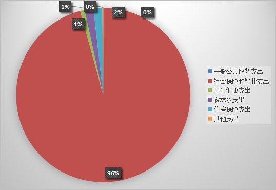 2021年一般公共预算财政拨款支出3396.10万元,主要用于以下方面:一般公共服务支出2万元,占0.06%;社会保障和就业支出3249.81万元,占95.69%;卫生健康支出27.75万元,占0.82%;农林水支出55.44万元,占1.63%;住房保障支出55.48万元,占1.63%;其他支出5.64万元,占0.17%。