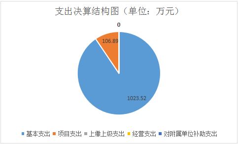 2021年本年支出合计1130.42万元,其中:基本支出1023.52万元,占90.5%;项目支出106.89万元,占9.5%;上缴上级支出0.00万元,占0.00%;经营支出0.00万元,占0.00%;对附属单位补助支出0.00万元,占0.00%。