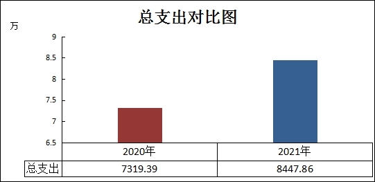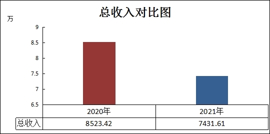 2021年总收入7431.61万元,较2020年相比减少1091.81万元,减少12%。,总支出8447.86万元,较2020年相比减少1128.47万元,减少15%。主要变动原因是财政拨款收入减少1101.52万元。