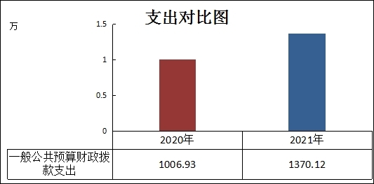 2021年一般公共预算财政拨款支出1370.12万元,占本年支出合计的18%。与2020年相比,一般公共预算财政拨款支出增加363.19万元,增长36%。主要变动原因是2020年的部分项目在2021年支付。
