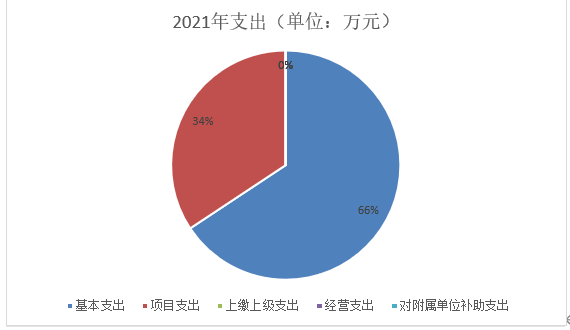 2021年本年支出合计596.04万元,其中:基本支出391.56万元,占65.69%;项目支出204.48万元,占34.31%。上缴上级支出0万元,占0%;经营支出0万元,占0%;对附属单位补助支出0万元,占0%。