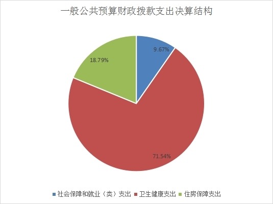 2021年一般公共预算财政拨款支出300.11万元,主要用于以下方面:社会保障和就业(类)支出29.01万元,占9.67%;卫生健康支出214.71万元,占71.54%;住房保障支出56.39万元,占18.79%。
