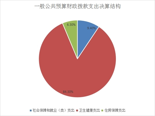 2021年一般公共预算财政拨款支出374.47万元,主要用于以下方面:社会保障和就业(类)支出35.26万元,占9.4%;卫生健康支出315.82万元,占84.3%;住房保障支出23.39万元,占6.3%。