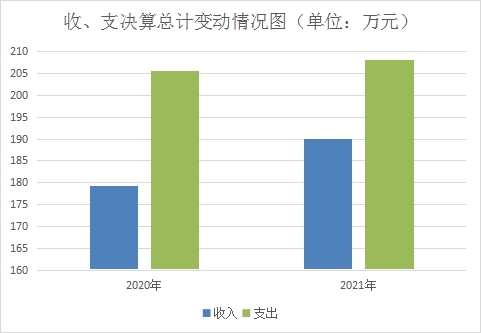 2021年度收入总计190.06万元,支出总计208.20万元。与2020年相比,收入总计增加10.81万元,增长6.03%,支出总计增加2.49万元,增长1.21%。主要变动原因是项目资金增加及工资调标等。