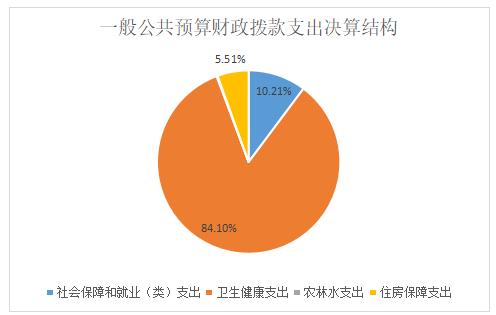 2021年一般公共预算财政拨款支出182.29万元,主要用于以下方面:社会保障和就业(类)支出18.62万元,占10.21%;卫生健康支出153.31万元,占84.11%;农林水支出0.31万元,占0.17%;住房保障支出10.05万元,占5.51%。