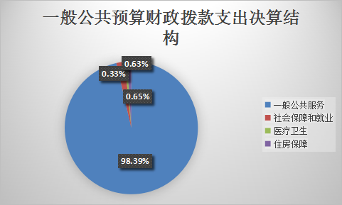 2021年一般公共预算财政拨款支出1203.7万元,主要用于以下方面:一般公共服务(201)支出1184.28万元,占98.39%;教育支出(类)0万元,占0%;科学技术(类)支出0万元,占0%;文化旅游体育与传媒(类)支出0万元,占0%;社会保障和就业(类)支出7.88万元,占0.65%;卫生健康支出3.94万元,占0.33%;住房保障支出7.59万元,占0.63%。