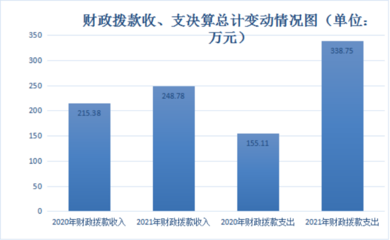 青川县关庄镇苏河小学2021年财政拨款收入总计248.78万元、支出总计338.75万元。与2020年相比,财政拨款收入增加33.4万元,增长1.55%;财政拨款支出增加183.64万元,增长118.39%,以上主要变动原因:一是主要原因为退休人员一次性补助、职工晋级工资调整;二是2021年拨付以前年度人员资金及项目资金导致财政拨款支出增加。