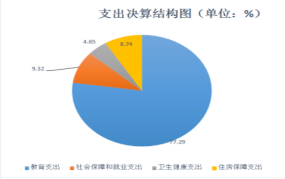 2021年大院民族学校支出合计573.26万元,其中:教育支出443.06万元,占77.29%;社会保障和就业支出53.41万元,占9.32%;卫生健康支出26.68万元,占4.65%;住房保障支出50.10万元,占8.74%。