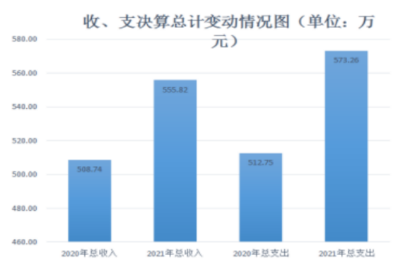 2021年青川县大院民族学校收入总计555.82万元,支出总计573.26万元。与2020年相比,收入总计增加47.08万元、支出增加60.51万元。总收入变动的主要原因为:一是一般公共预算财政拨款收入增加了47.08万元,主要原因为奖励性绩效增加,薪级正常晋升、岗位晋级、五险一金缴费增加导致一般公共预算财政拨款收入增加;二是其他收入减少了0.44万元,主要为2021年慰问费收入减少。总支出变动的主要原因为:一是教育支出增加51.64万元,主要支出为补发以前年度年度奖金、退休人员一次性补助、职工晋级工资调整以及项目资金等;二是社会保障和就业支出减少4.02万元,主要为2021年无职业年金记实;三是卫生健康支出增加2.10万元,主要为职工人均最低缴费标准提高;四是住房保障支出增加10.78万元,主要为将发放的人员奖金纳入住房公积金缴存基数。
